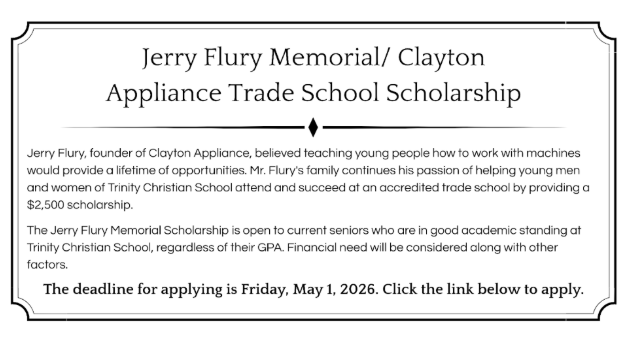 Jerry Flury Memorial Clayton Appliances Trade School Scholarship (Deadline: May 1, 2026)
