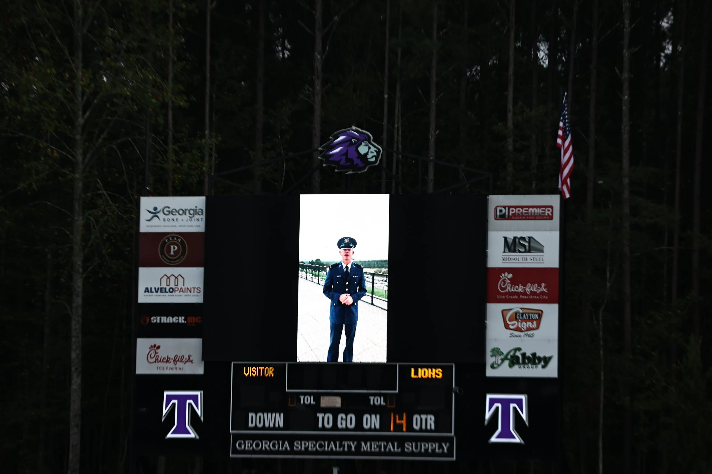 The pregame prayer was led by 2024 Homecoming King and Class of 2025 Valedictorian RJ Coker. RJ is currently a Cadet in the United States Air Force Academy and a video of him in uniform praying over our school and the big game was shared on the Jumbotron. A beautiful rendition of our national anthem was performed by Class of 2023 graduate Brianna Hernandez who is currently a sophomore at Lee University in Cleveland, Tennessee.