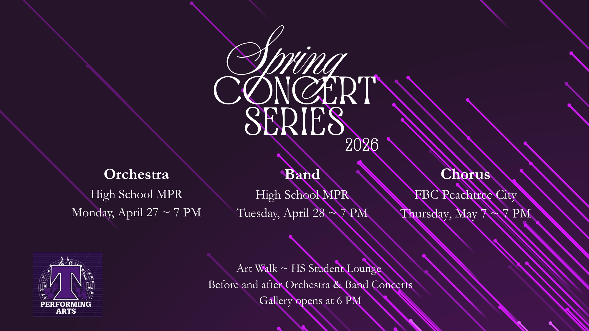 April 27 & 28 - MS/HS Art Walk - 6pm (before each concert)